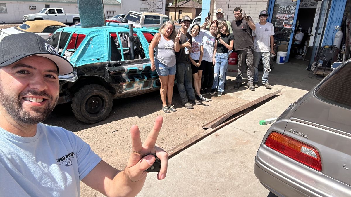 The hospitality that I experienced next was unprecedented. The shop was bustling with activity—deep in preparations for an upcoming demolition derby at the Navajo County Fair. But they dropped what they were doing, helped me push the car to a service bay, and got to work with the install. Meanwhile, I got to know the family members who were there and even watched them paint some accessories for the demolition derby cars. In short order, the shop foreman, Frank, said I was good to go and asked me to fire up the car so he could test the voltage output. Everything checked out, and my sense of optimism reached new heights.