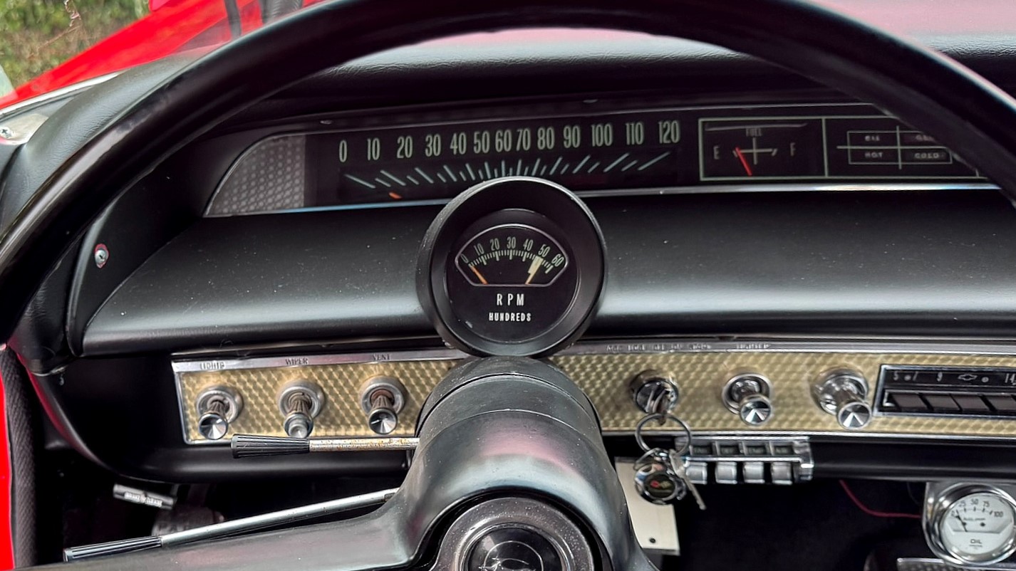 Instruments include a 160-mph speedometer, 7,000-rpm tachometer, and fuel gauge. The odometer currently reads 63,853 miles, which is the true mileage, according to the seller.