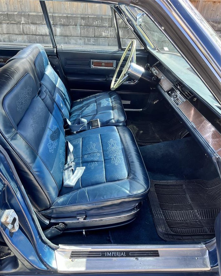 This Regal Blue metallic 1967 Imperial Crown four-door hardtop was the most popular Imperial model and body style at 9,415 built, exceeding the next-most popular offering by over 6,000 units. “Rust-free body and undercarriage. Odometer shows approximately 105,000 miles,” says the seller. “The interior is in very good condition, with only slight wear showing on the driver’s seat. The air conditioning compressor was fully rebuilt about 2 years ago.” The engine was rebuilt 3,000 miles ago and now features an electronic ignition module. The 727 TorqueFlite was also rebuilt approximately 4,000 miles ago.