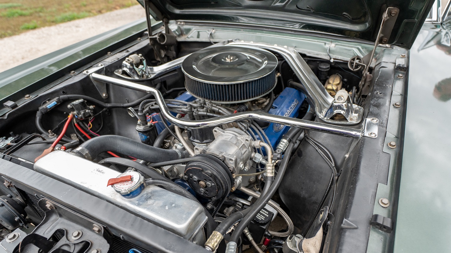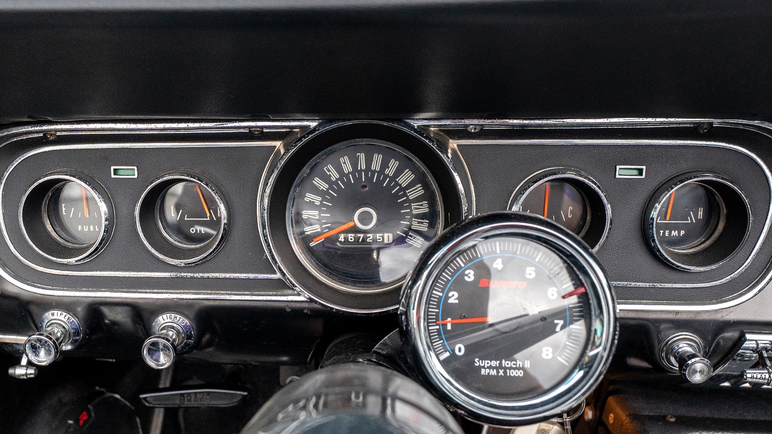 The 331ci Cadillac V8 was reportedly built by Anolik and the San Francisco Shifters car club in 1958 and features Offenhauser finned valve covers, ported 1956 Cadillac cylinder heads, ForgedTrue pistons, boxed connecting rods, a Herbert roller camshaft, a Joe Hunt Vertex magneto, custom pulleys, and a Cragar blower manifold. Induction is handled by a quartet of Stromberg carburetors with chrome stacks atop a GMC 4-71 blower that was reportedly sourced from a Greyhound bus mechanic in the 1950s. An electric cooling fan was installed during the refurbishment, and it is controlled via a switch on the dashboard.