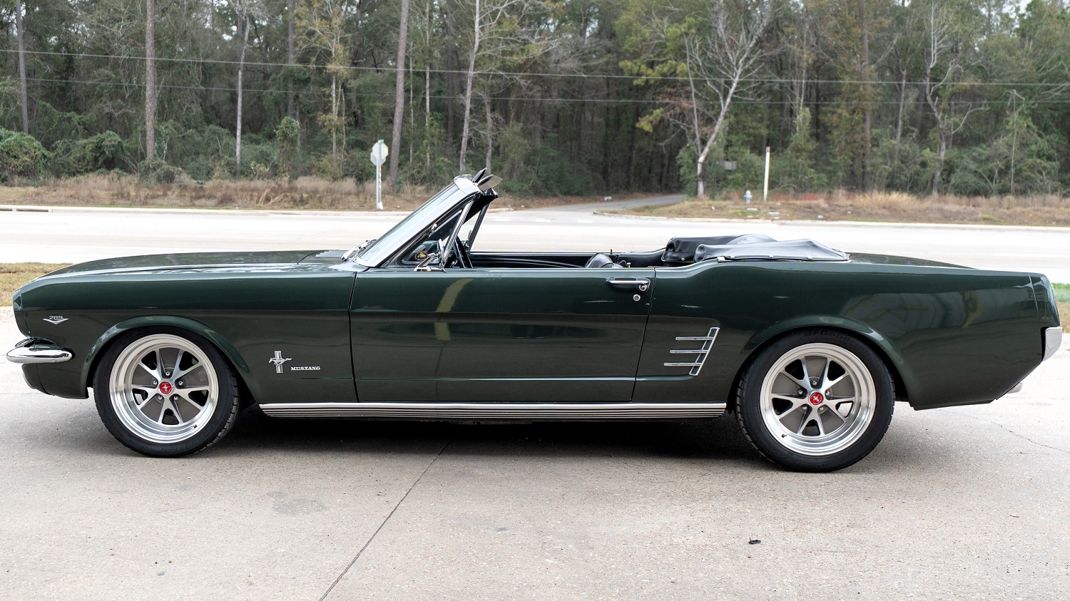 Staggered-width 15″ chrome wheels are mounted with BFGoodrich Silvertown whitewall bias-ply tires up front and Bruce’s Slicks whitewall rear tires that reportedly date to the 1950s. The front suspension incorporates chrome springs and control arms with drilled lower units as well as hydraulic shocks sourced from a 1934 Ford. The live rear axle retains hydraulic shocks and leaf springs. The power-assisted drum brakes were overhauled and feature red drums.