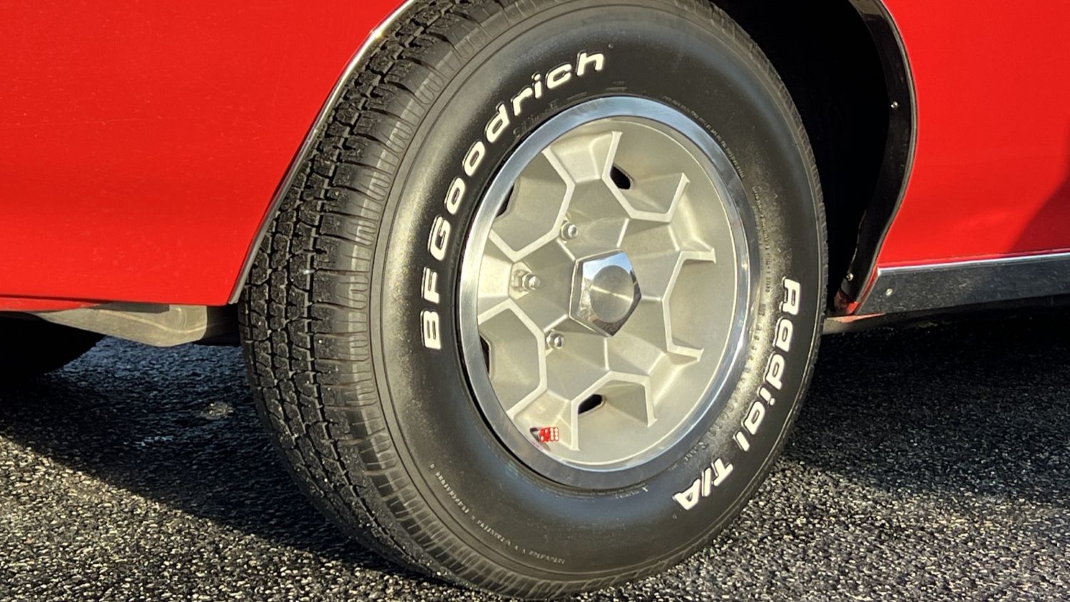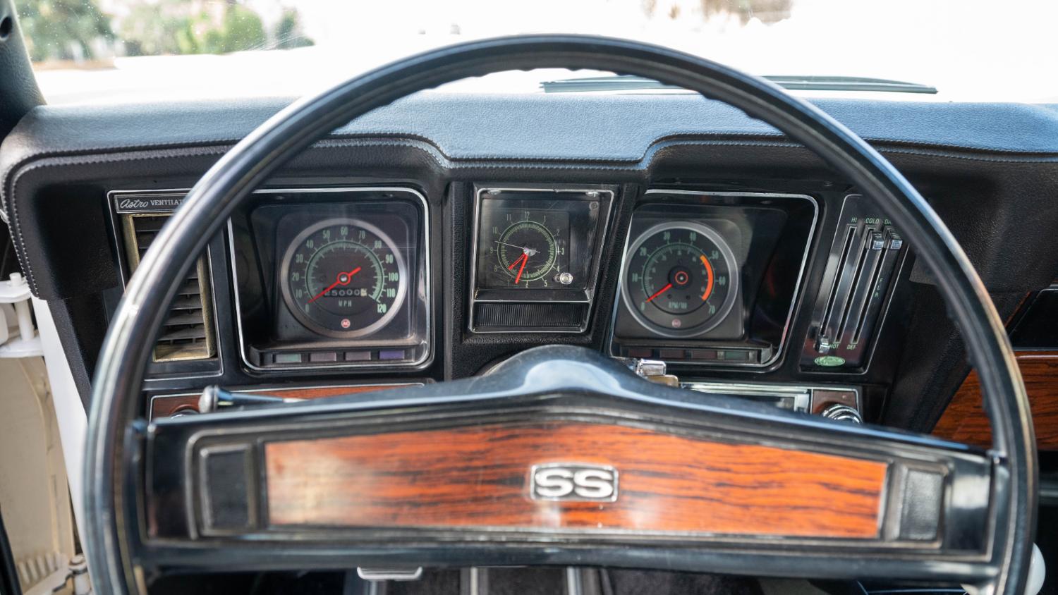 Powered by a matching-numbers 402ci V-8 engine factory-rated at 350hp, topped with a four-barrel carburetor. Cowl hood, SS badging and 14-inch Magnum 500 wheels wrapped in 215/70 BFGoodrich Radial T/A tires.