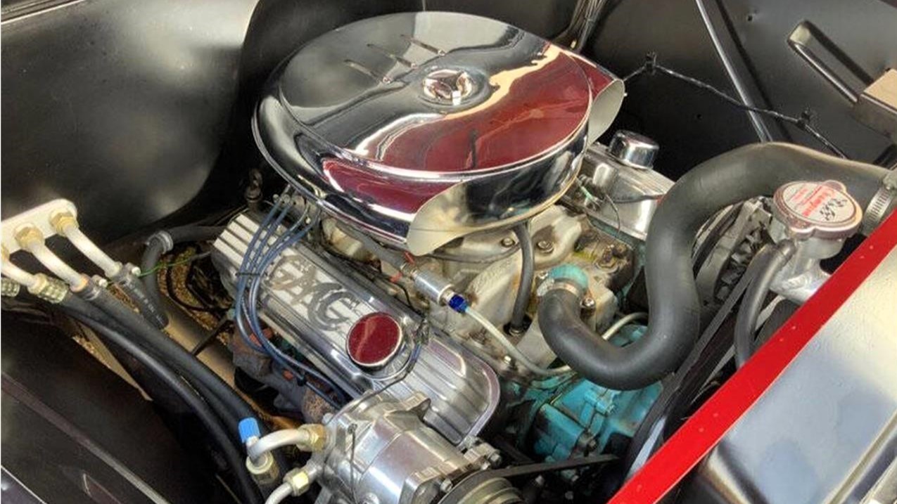 Before you ask, no, there isn’t a Ford “Coyote” V8 under the hood. According to the selling dealer, it’s actually a Pontiac 350, although it wears GMC-branded valve covers. A TH350 three-speed automatic transmission with a floor-mounted shifter sends power to the 3.42:1 rear end.