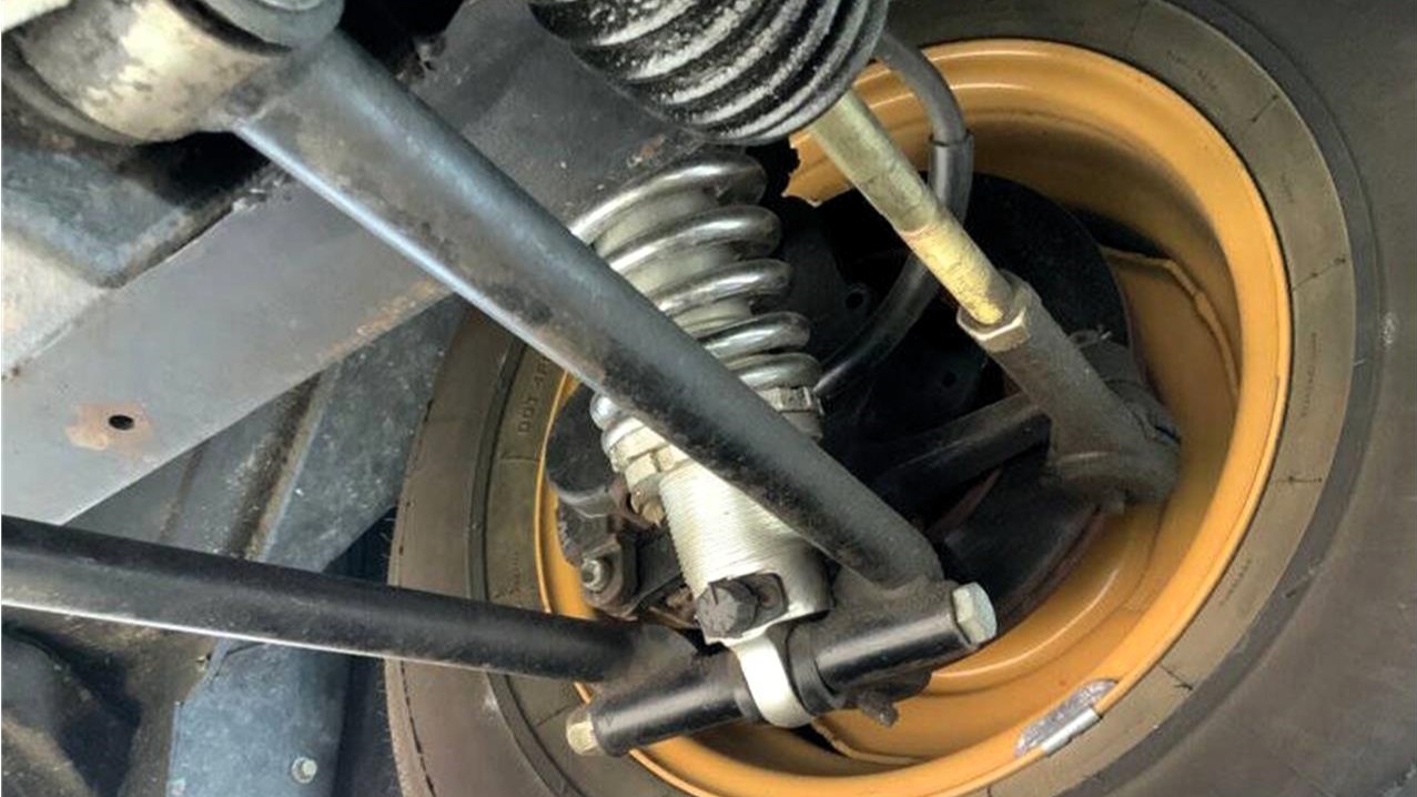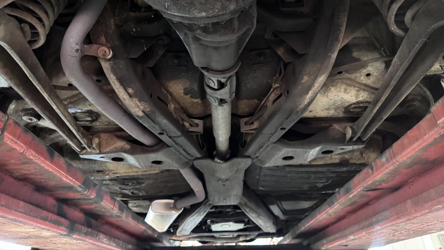 The undercarriage features power drum brakes at all four corners. Emissions are carried to the rear via a single exhaust system.