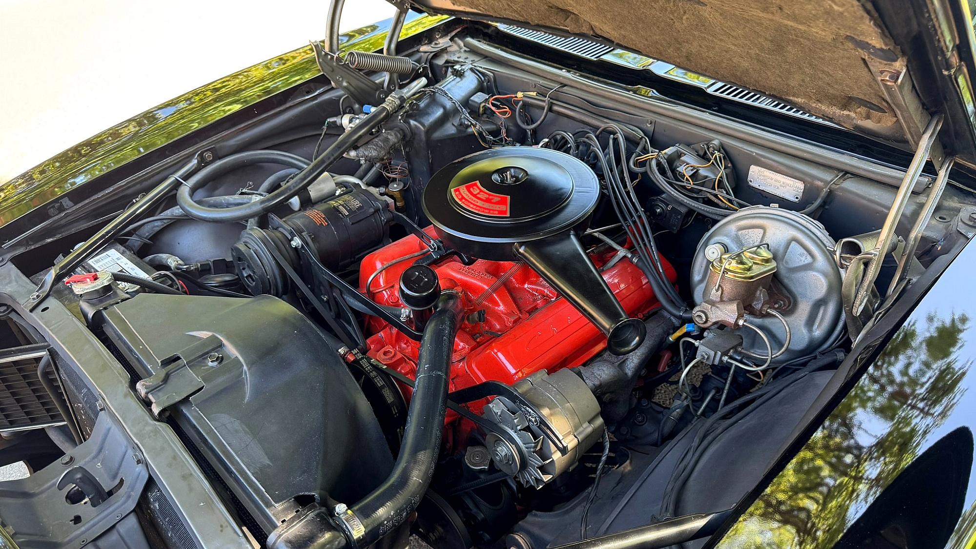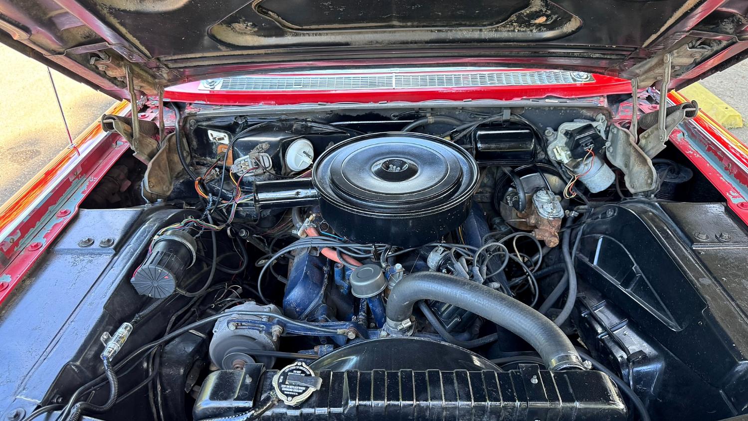 The 429ci V8 was rated at 340 horsepower when new. It is backed by a three-speed Turbo Hydra-Matic transmission, the first application of this transmission (shared with Buick) that would be more widely available within GM the following model year.