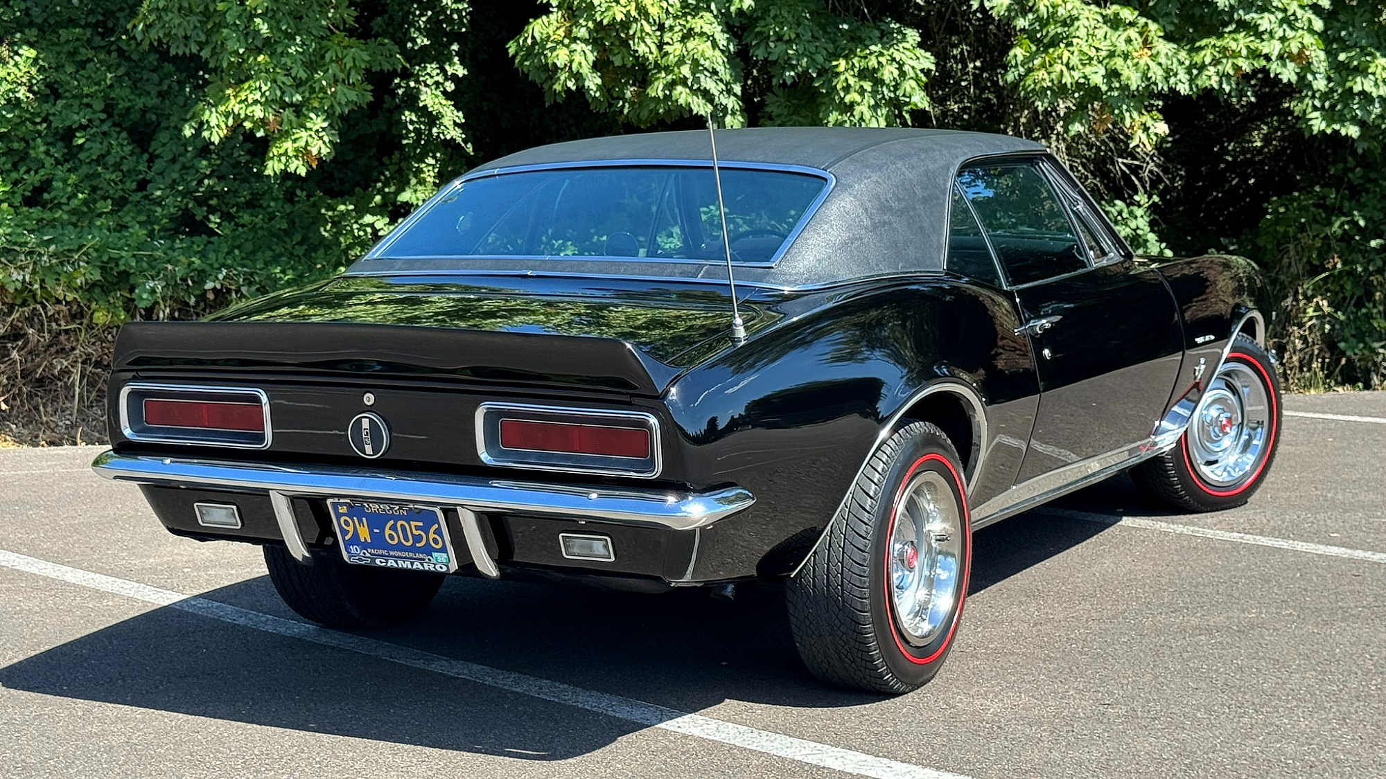 Back to the Camaro in question. It’s looking fresh for pushing 60 years old. Traction comes from a set of redline tires wrapped around Rally wheels, and exterior features include a driver’s-side mirror and a rear spoiler. Even the engine bay and undercarriage are well-presented; it looks to be show-level.