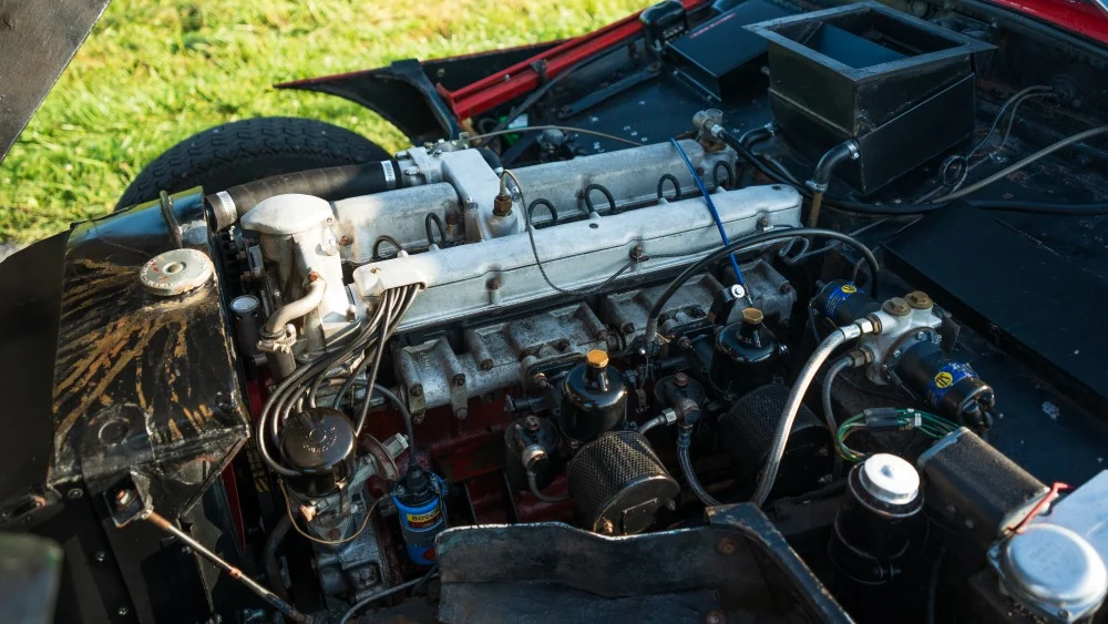 The seller describes this Aston Martin as a late-production, factory left-hand drive, matching-numbers 1959 DB Mark III. The car is finished in red with tan leather interior. It is important to note that when new this DB Mark III was originally built, it was done in the desirable color combination of Elusive Blue with off-white leather. If I were to buy this car, I would use it as-is for a few years and then return it to its original colors, show it at places like Pebble, and then drive it again on tours and rallies.