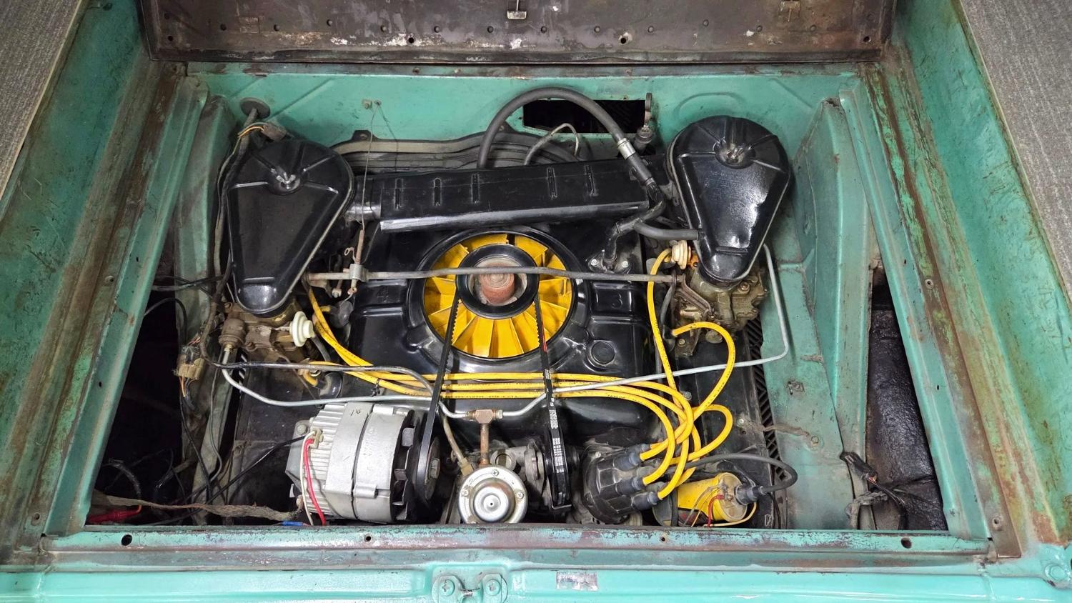 The air-cooled flat-six was originally rated at 80 horsepower with dual single-barrel carburetors, and it’s backed by a two-speed Powerglide automatic. An Accel ignition coil has been added.