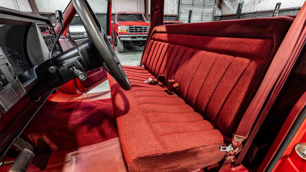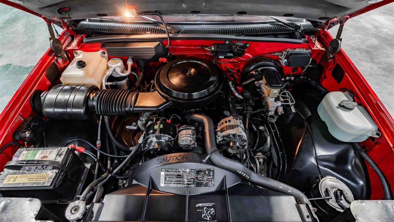 Continuing the “red” theme, the interior of the cab features a cloth bench seat, carpeting, and rubber floor mats all in the eye-catching color. Features include power windows, power locks, a Delco AM/FM radio, power steering, and factory air conditioning. Under the hood is a 5.7-liter V8 mated to a 700R4 four-speed automatic transmission. The selling dealer says that the truck will come with a clean CARFAX report, an original window sticker, and additional paperwork. For collectors, those added niceties make this low-mileage truck even more irresistible. Better make a move on it before someone else does!