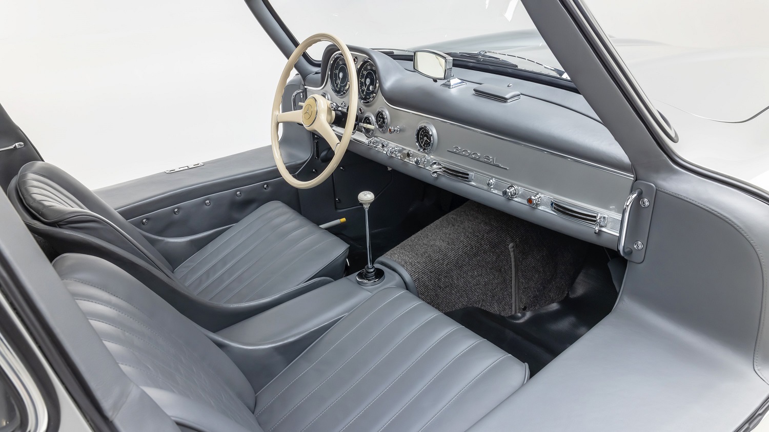 Ultimately, Mercedes made 1,400 Gullwings between 1954 and 1957. Production of this particular 300 SL was completed on August 12, 1955, after which it was shipped to the U.S. and sold to its first owner in Belmont, California. Following a series of subsequent owners, it was put into storage in the late 1970s. Under Hjeltness Restoration‘s expert care, this Gullwing received a comprehensive overhaul that was finished in 2008. The California-based shop, which specializes in 300 SLs, used its expertise to restore the drivetrain, suspension, interior, paint, chrome, and hardware to factory-correct condition. The Gullwing went on to stun an all-new generation of enthusiasts, winning Best Show Car honors at the 2008 International Gull Wing Convention and the prize for Best in Show at the 2011 San Marino Motor Classic. Most recently, it was serviced by the Mercedes-Benz Classic Center USA to keep it roadworthy for years to come.