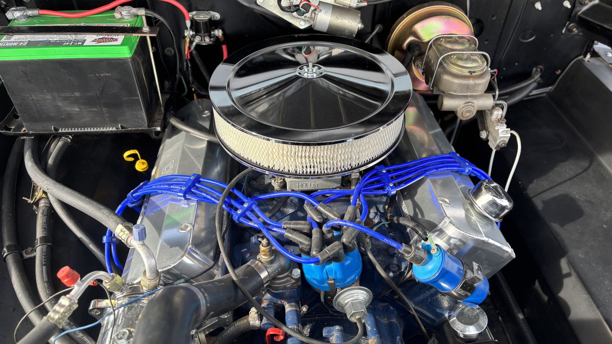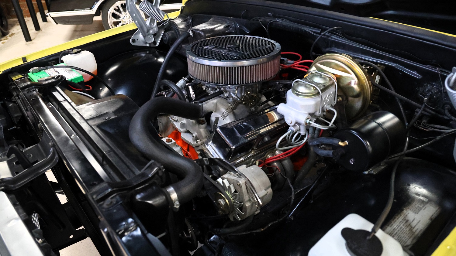 Under the hood, you’ll find a rebuilt 350ci V8 equipped with a four-barrel carburetor and long-tube headers. The engine is paired with a TH350 three-speed automatic transmission.