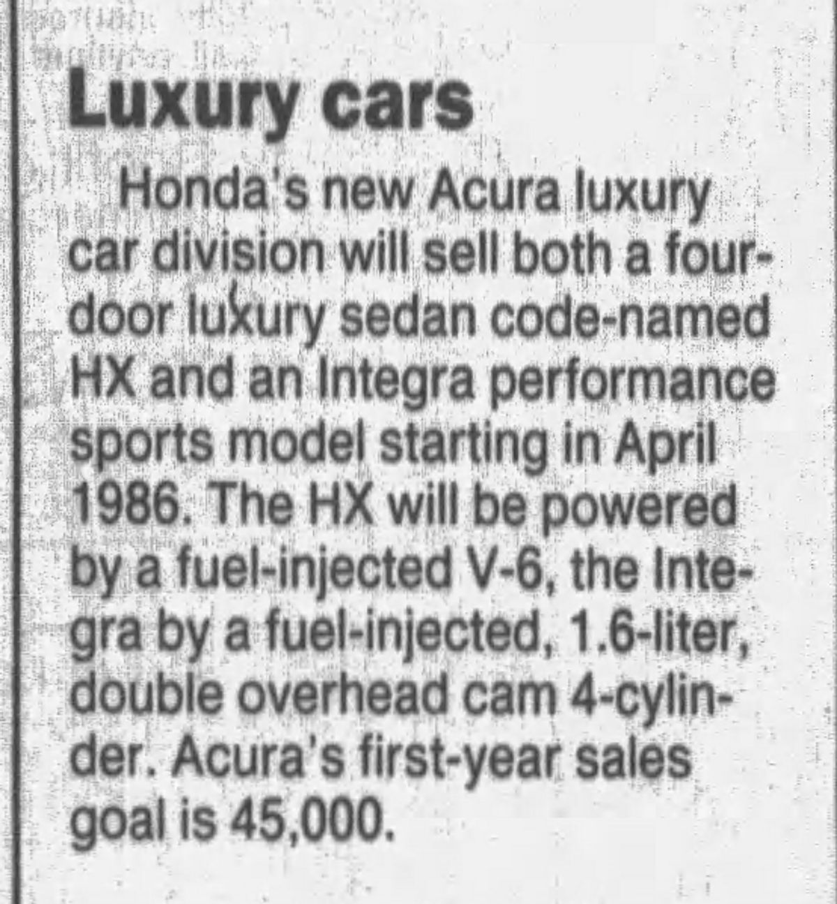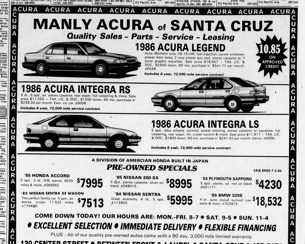 During its launch year, Acura offered only two models: