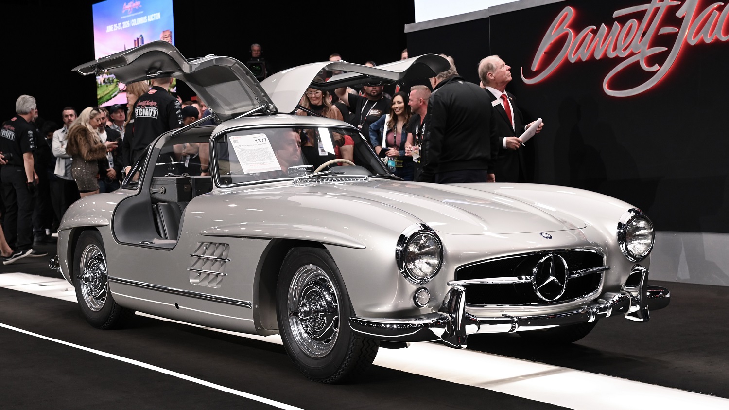High stakes, fast-paced competition, head-turning cars – those sound like the things you’d see in a new action movie, don’t they? They’re also what you’ll find at a Barrett-Jackson auction. One of the stunning vehicles that crossed the block on Super Saturday at the Barrett-Jackson 2026 Scottsdale Auction was an award-winning, meticulously restored 1955 Mercedes-Benz 300 SL Gullwing coupe. After all the bids were in, the hammer dropped at $2.53 million. The best part? The proceeds will benefit charity.