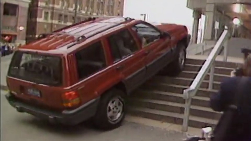 The first Grand Cherokee, known as the “ZJ,” was introduced on January 7, 1992 for the 1993 model year. It had one of the oddest – and also most engaging – debuts in automotive history. Bob Lutz, then-leader of Chrysler’s Global Product Development team, drove up a flight of stairs at the Detroit Auto Show and crashed a Grand Cherokee through a window. Talk about making an entrance. It was silly, but memorable; after all, we’re still here talking about it three decades later. Skip to about 3:30 in the video below for the best part.