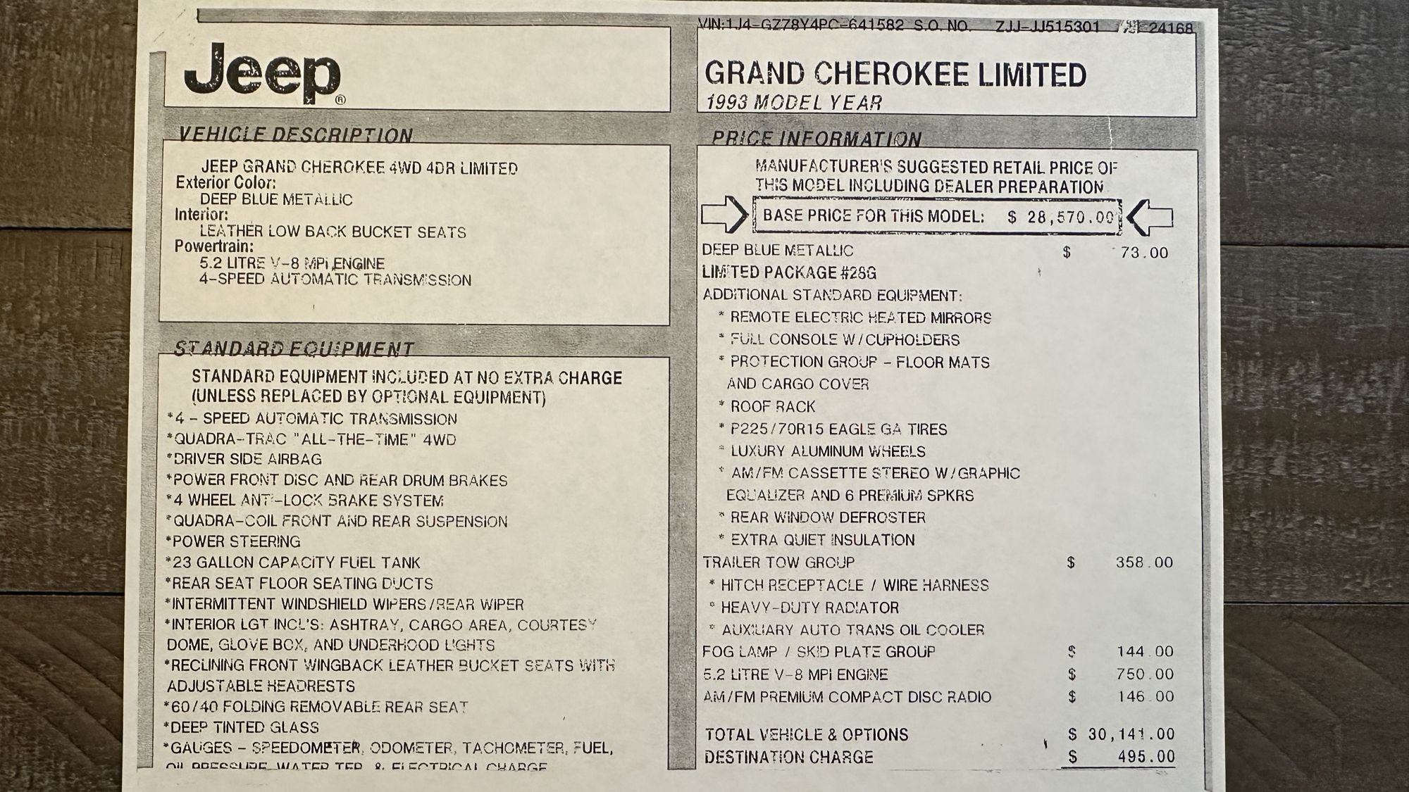 My family had a special connection to Grand Cherokees. My great-aunt had a Deep Blue Metallic 1993 Limited with a gray perforated leather interior. She kept a promotional brochure in the seatback pocket that I’d thumb through while riding as a second-row passenger. Core memories! And yeah, that’s me pictured above at about age 15. The vehicle’s retail price was $30,636 when it was new — a hefty sum.