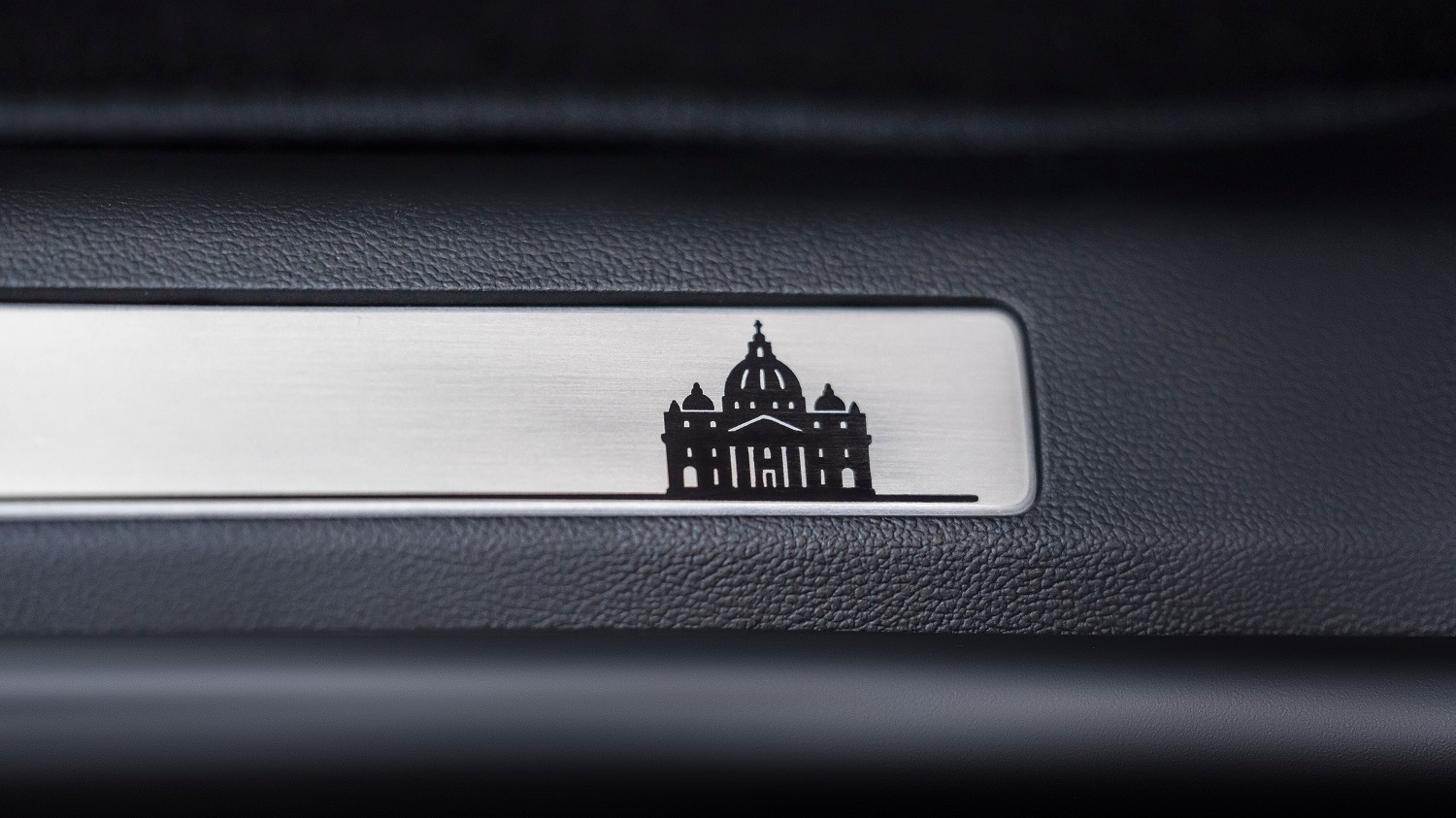 The team at Ford’s Chicago Assembly plant also made sure to include some thoughtful, personalized touches the Pope would appreciate. Every time he gets into his Explorer, he’ll see how far he’s come on the door sill scuff plates, which show the Chicago skyline at one end and St. Peter’s Basilica at the other. The front buckets have small individual Chicago flags on their inboard sides; in between those is another Chicago skyline, which was sewn into the lid of the center console’s storage compartment.