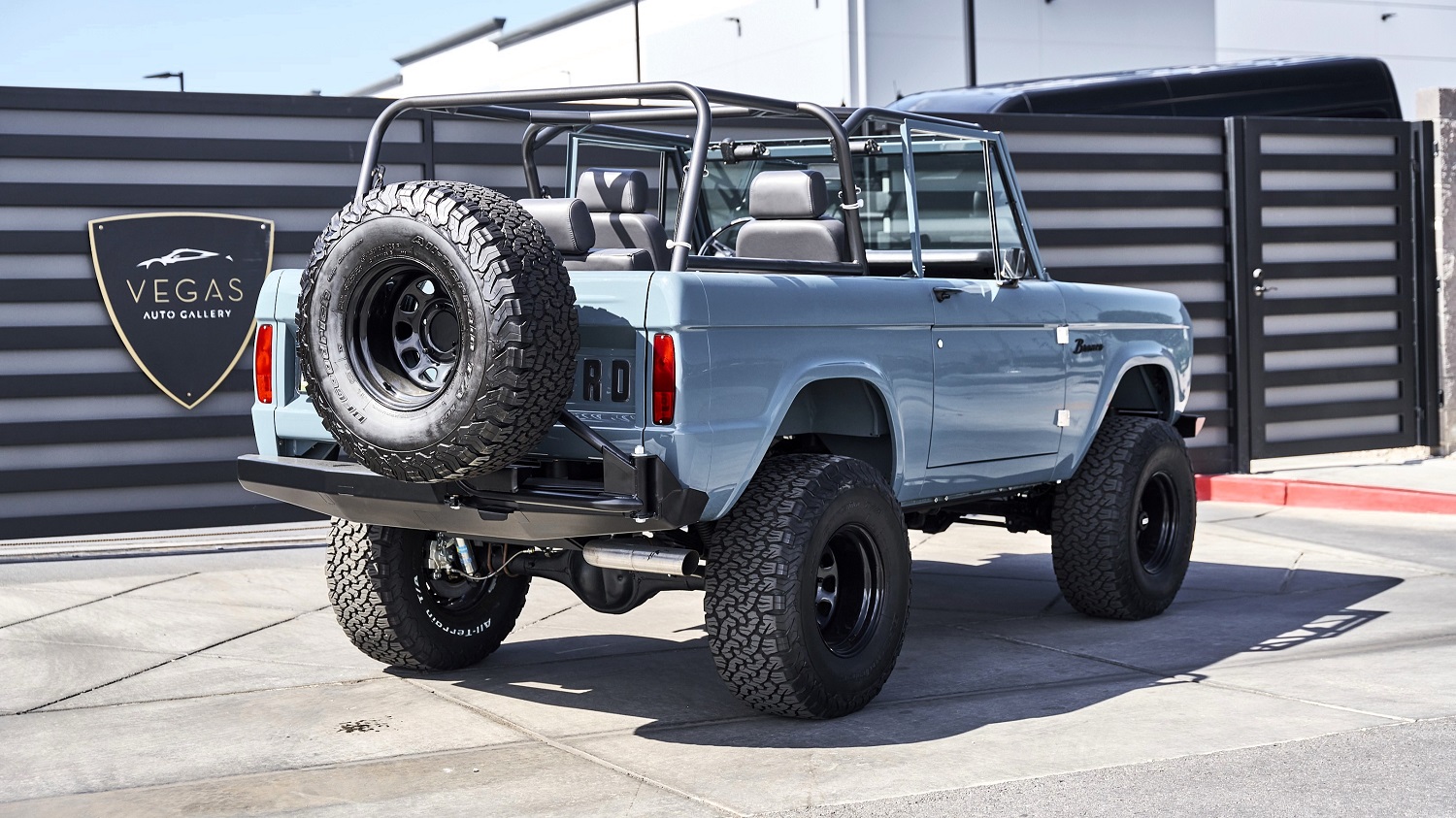 If you’re familiar with modern Fords, the Area 51 paint shouldn’t be alien to you because it’s a color that was previously offered on the current generation of the Bronco. The hue is complemented by charcoal gray bumpers and trim. Exterior features include LED headlights, manual locking front hubs, dual mirrors, tinted windows, AMP Research power running boards, roll cage, rear-mounted swing-away spare tire carrier, and single exhaust outlet. The video below shows a full exterior and interior tour of the vehicle.