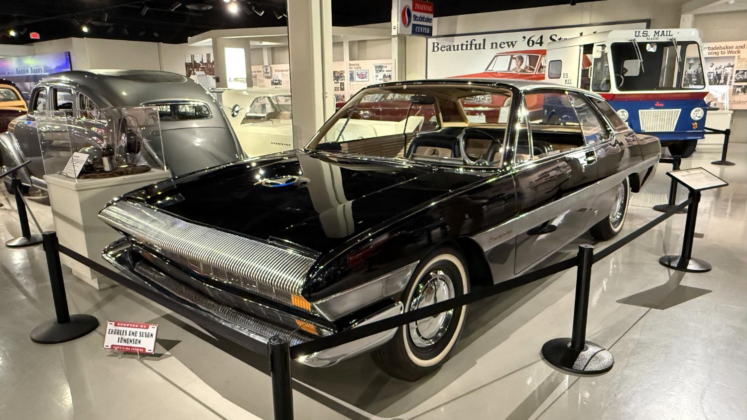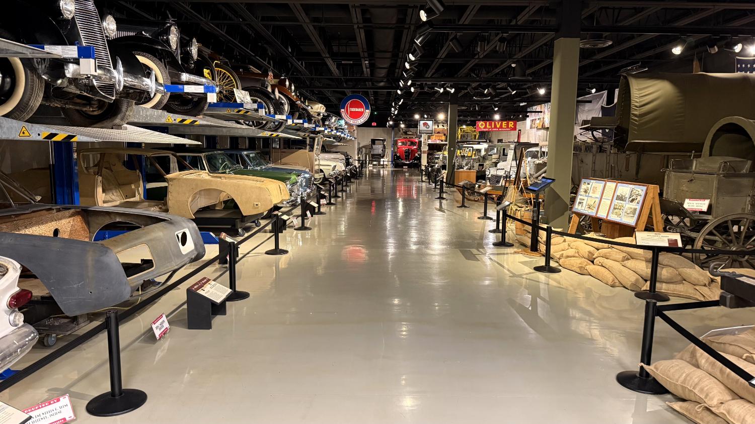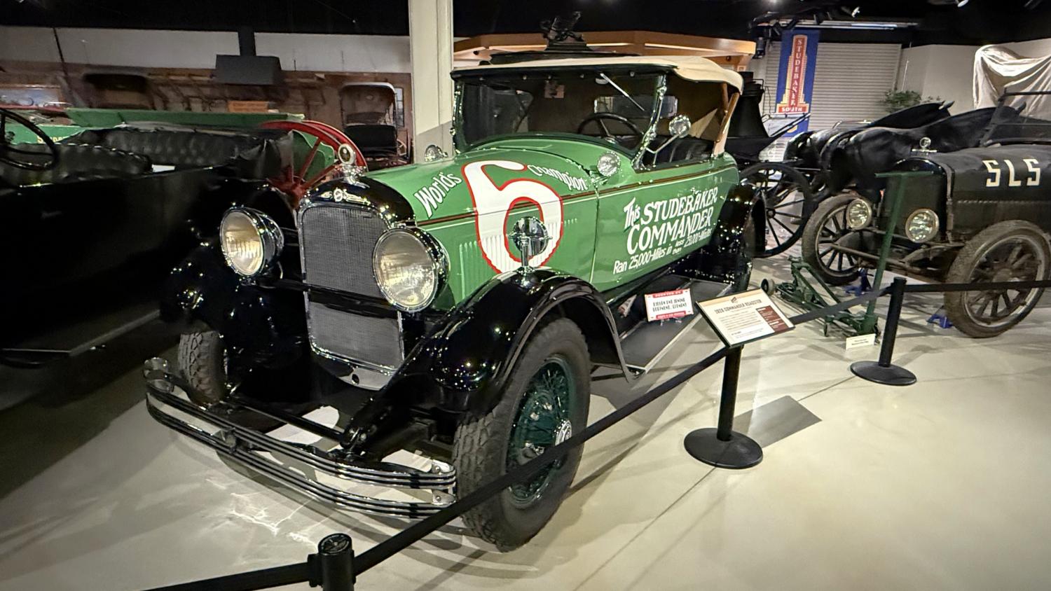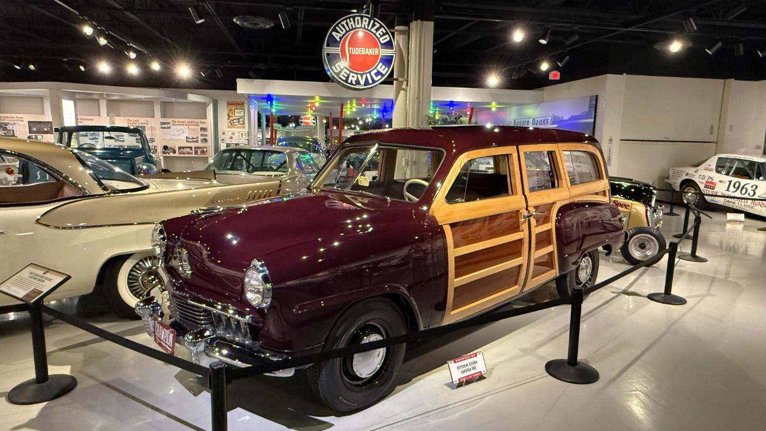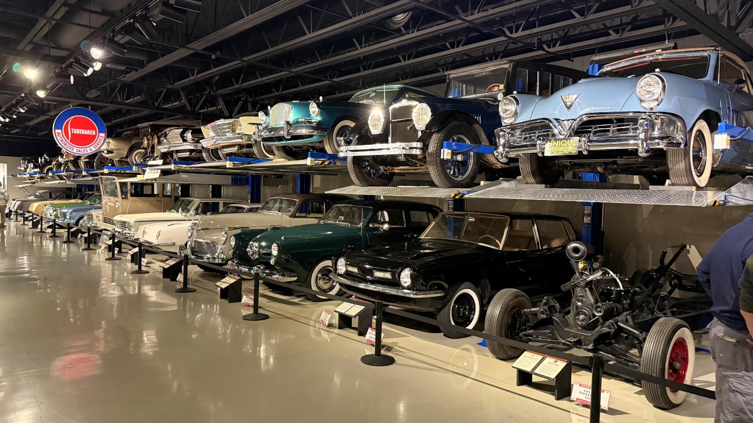 c.1835 Conestoga wagon1863 hearseOliver, a company from South Bend, built this plow in 1893.1950 Champion convertible1910 dump wagon1919 “Izzer” buggy, the last Studebaker buggy built.This Barouche carriage took President Lincoln to Ford’s Theatre. You know what happened next.Studebaker built EVs before ICE cars. This coupe is from 1911.The 1910 E.M.F. was sold by Studebaker dealers, then absorbed by the company.This 1904 Model C is the oldest surviving gas-powered Stude.1912 Flanders 20 was Studebaker’s entry-level model.1913 Model 25 Touring featured a rear-mounted transaxle.1913 E6 Touring was the first six-cylinder Studebaker, helping the branch achieve fourth place in the industry.1922 Big Six child’s hearse1928 Commander roadster traveled 25,000 miles in under 23,000 minutes (just under 16 days). 1920 Light Six, the first Studebaker auto build in South Bend.This 1919 Big Six traveled 90,000 miles in two years, 390,000 in five.1927 Erskine, Studebaker’s attempt at a lower-cost vehicle.1929 President State 7-passenger sedan with 135-inch wheelbase.The Rockne succeeded the Erskine but was only built from 1932-33. This is a 1932 Rockne 65.1932 President St. Regis Brougham1932 President convertible coupe1938 State Commander convertible sedan1933 Speedway President1916 SF-Four roadster1925 Big Six Duplex phaetonThese letters were used by the Newman Altman Studebaker dealership in South Bend.Upstairs, we find several movie cars mixed in with more of Studebaker’s history.Any James Bond fans recognize this 1974 AMC Hornet?1966 Ford Thunderbird from “Thelma & Louise”This 1935 Commander was used in “The Color Purple.”1947 M5 half-ton pickup1949 2R5 pickup1937 Coupe Express was produced through 1939.1940 President Club Sedan1962 Sceptre prototype designed by Brooks Stevens was to replace the Hawk.1941 Champion1928 fire truck from St. Joseph, MichiganThis 1966 Cruiser is the final Studebaker built, marking an end to 114 years of vehicle manufacturing.1963 ZIP van1947 Champion Deluxe station wagonThis 1964 Daytona was the last vehicle to be built in South Bend; production resumed in Hamilton, Ontario, Canada. It is powered by an R1 289.1950 Commander Starlight coupe1953 Champion Starliner 1956 Packard Predictor show car1956 Golden Hawk and 1955 President Speedster1957 Golden Hawk 400, a rare version with an all-leather interior.Studebaker Special raced in the 1933 Indy 500.1961 Champ truck1963 Avanti “#9” hit 170.81 mph at Bonneville.1958 President Starlight1958 Scotsman1949 Champion Regal sedan1952 Commander Starliner1964 GT Hawk with supercharged R2 engine originally owned by Brooks Stevens.This 1963 Avanti hit 200 mph at Bonneville in 1993.Studebaker’s first V-8 appeared in 1951.The 1964 R4 measured 304.5ci and featured dual quads and 12.0:1 compression.The basement vault featured more eclecticism from different Studebaker eras.1956 President Classic special-ordered in Ceramic Green, a Hawk color.1964 Pursuit Marshall was one of 30 sent to the Seattle Police Department for evaluation.1959 Lark features an experimental rear-engine layout powered by a 1953 Porsche.“Blackout” 1942 Champion c.1942 T42 Weasel1908 “Extension” station wagon and 1936 Ace truckThe 1950 Land Cruiser rode on a 124-inch wheelbase.