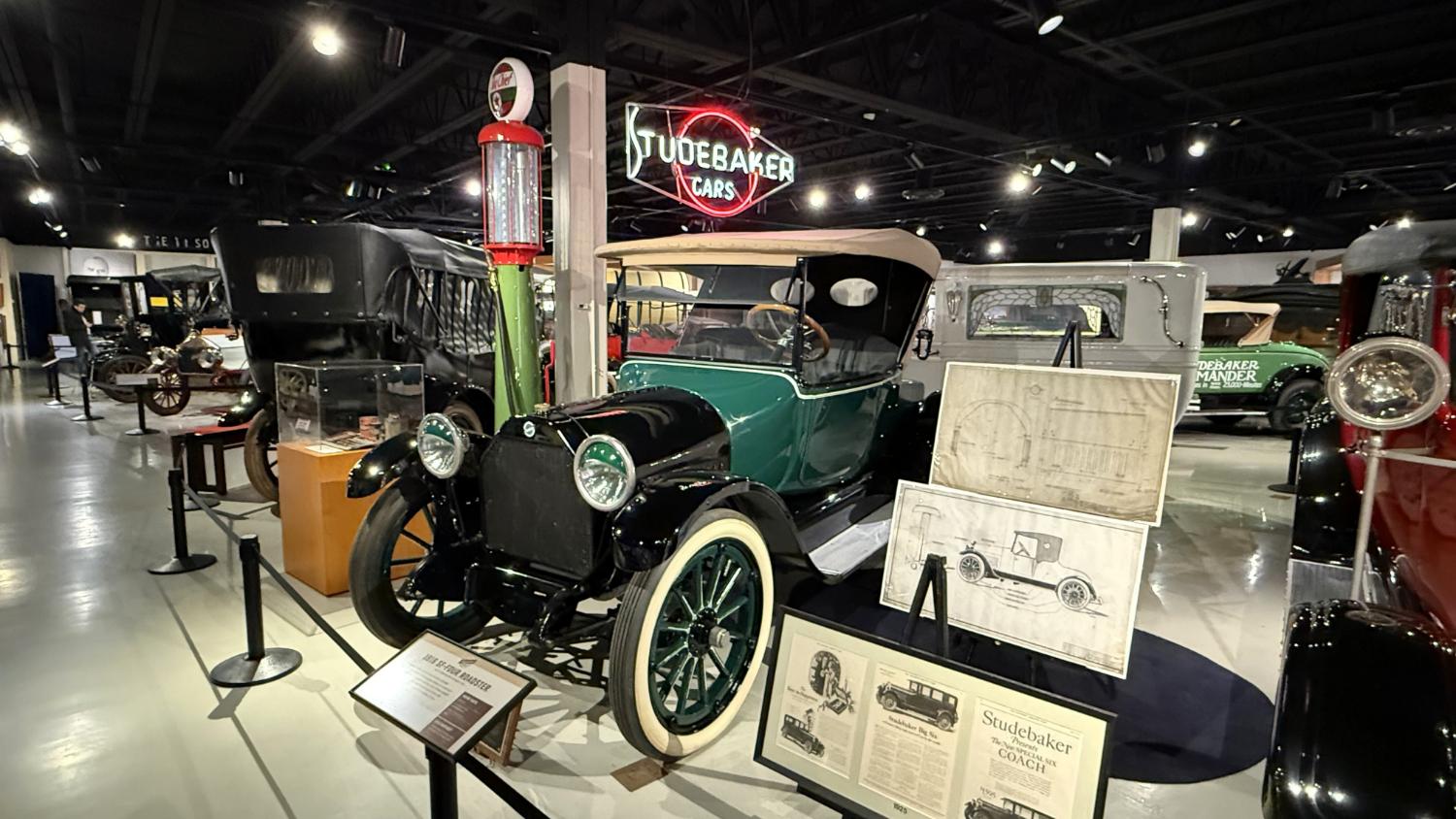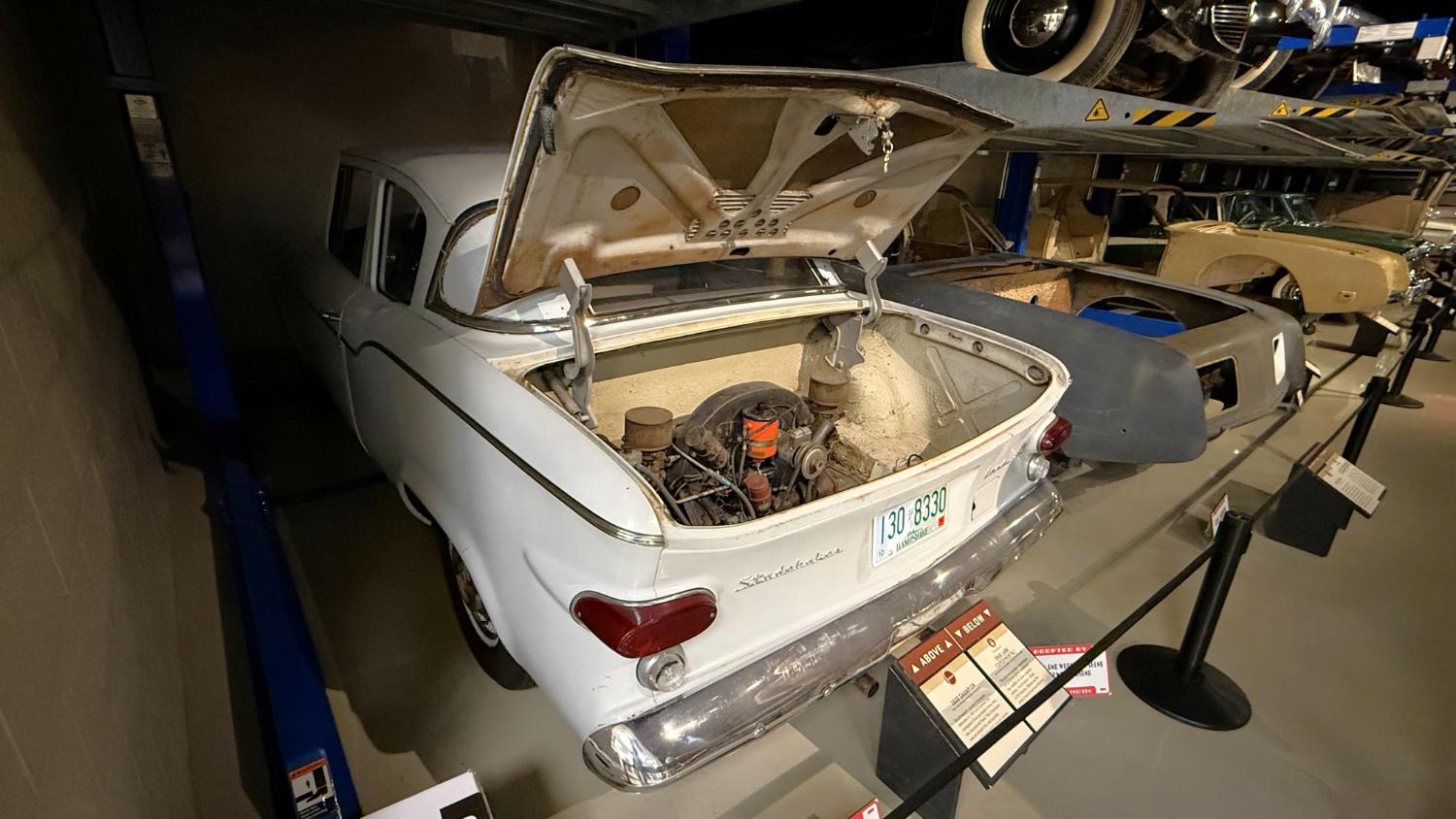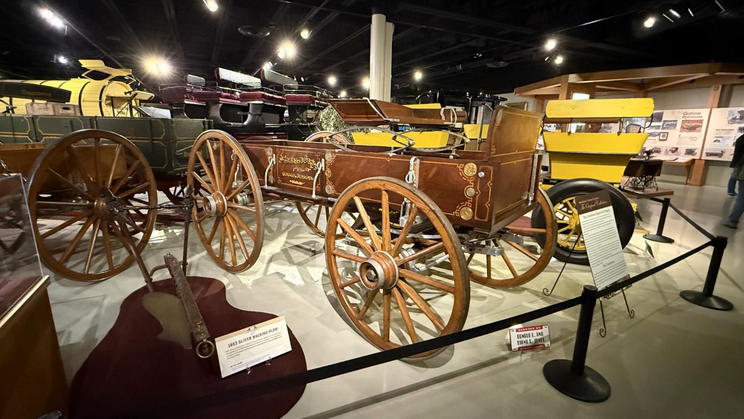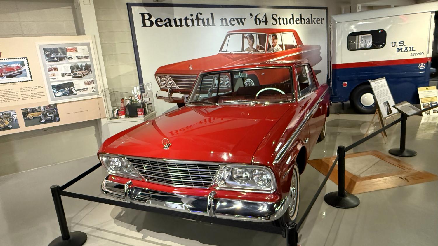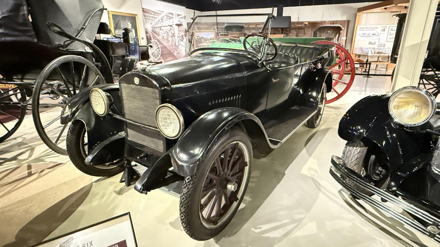 c.1835 Conestoga wagon1863 hearseOliver, a company from South Bend, built this plow in 1893.1950 Champion convertible1910 dump wagon1919 “Izzer” buggy, the last Studebaker buggy built.This Barouche carriage took President Lincoln to Ford’s Theatre. You know what happened next.Studebaker built EVs before ICE cars. This coupe is from 1911.The 1910 E.M.F. was sold by Studebaker dealers, then absorbed by the company.This 1904 Model C is the oldest surviving gas-powered Stude.1912 Flanders 20 was Studebaker’s entry-level model.1913 Model 25 Touring featured a rear-mounted transaxle.1913 E6 Touring was the first six-cylinder Studebaker, helping the branch achieve fourth place in the industry.1922 Big Six child’s hearse1928 Commander roadster traveled 25,000 miles in under 23,000 minutes (just under 16 days). 1920 Light Six, the first Studebaker auto build in South Bend.This 1919 Big Six traveled 90,000 miles in two years, 390,000 in five.1927 Erskine, Studebaker’s attempt at a lower-cost vehicle.1929 President State 7-passenger sedan with 135-inch wheelbase.The Rockne succeeded the Erskine but was only built from 1932-33. This is a 1932 Rockne 65.1932 President St. Regis Brougham1932 President convertible coupe1938 State Commander convertible sedan1933 Speedway President1916 SF-Four roadster1925 Big Six Duplex phaetonThese letters were used by the Newman Altman Studebaker dealership in South Bend.Upstairs, we find several movie cars mixed in with more of Studebaker’s history.Any James Bond fans recognize this 1974 AMC Hornet?1966 Ford Thunderbird from “Thelma & Louise”This 1935 Commander was used in “The Color Purple.”1947 M5 half-ton pickup1949 2R5 pickup1937 Coupe Express was produced through 1939.1940 President Club Sedan1962 Sceptre prototype designed by Brooks Stevens was to replace the Hawk.1941 Champion1928 fire truck from St. Joseph, MichiganThis 1966 Cruiser is the final Studebaker built, marking an end to 114 years of vehicle manufacturing.1963 ZIP van1947 Champion Deluxe station wagonThis 1964 Daytona was the last vehicle to be built in South Bend; production resumed in Hamilton, Ontario, Canada. It is powered by an R1 289.1950 Commander Starlight coupe1953 Champion Starliner 1956 Packard Predictor show car1956 Golden Hawk and 1955 President Speedster1957 Golden Hawk 400, a rare version with an all-leather interior.Studebaker Special raced in the 1933 Indy 500.1961 Champ truck1963 Avanti “#9” hit 170.81 mph at Bonneville.1958 President Starlight1958 Scotsman1949 Champion Regal sedan1952 Commander Starliner1964 GT Hawk with supercharged R2 engine originally owned by Brooks Stevens.This 1963 Avanti hit 200 mph at Bonneville in 1993.Studebaker’s first V-8 appeared in 1951.The 1964 R4 measured 304.5ci and featured dual quads and 12.0:1 compression.The basement vault featured more eclecticism from different Studebaker eras.1956 President Classic special-ordered in Ceramic Green, a Hawk color.1964 Pursuit Marshall was one of 30 sent to the Seattle Police Department for evaluation.1959 Lark features an experimental rear-engine layout powered by a 1953 Porsche.“Blackout” 1942 Champion c.1942 T42 Weasel1908 “Extension” station wagon and 1936 Ace truckThe 1950 Land Cruiser rode on a 124-inch wheelbase.