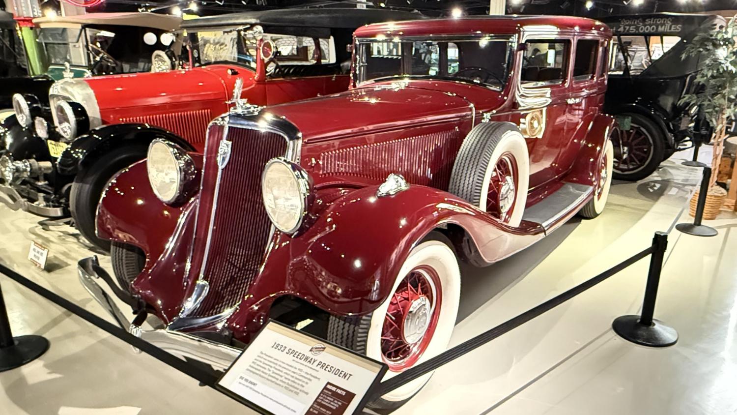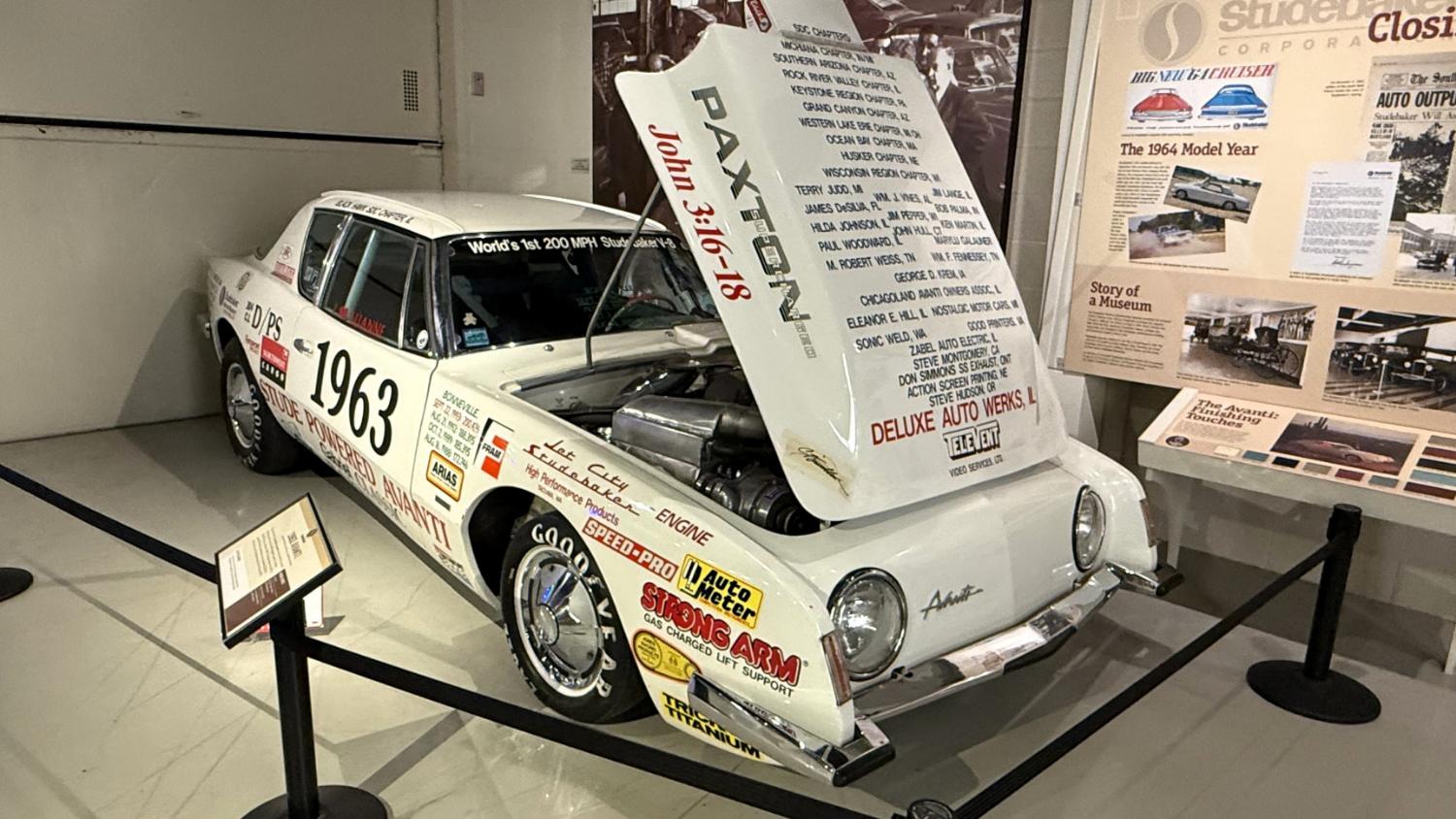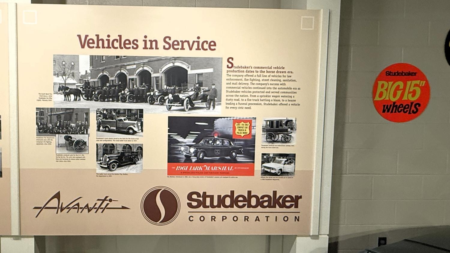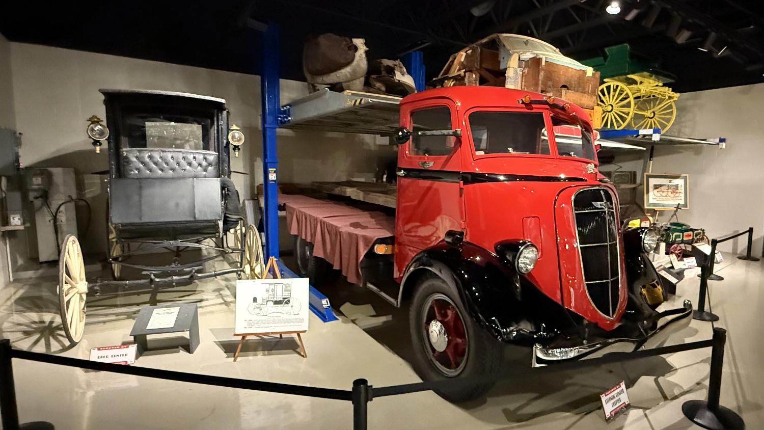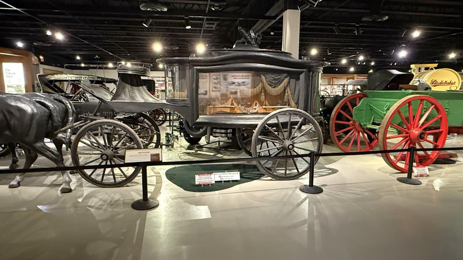c.1835 Conestoga wagon1863 hearseOliver, a company from South Bend, built this plow in 1893.1950 Champion convertible1910 dump wagon1919 “Izzer” buggy, the last Studebaker buggy built.This Barouche carriage took President Lincoln to Ford’s Theatre. You know what happened next.Studebaker built EVs before ICE cars. This coupe is from 1911.The 1910 E.M.F. was sold by Studebaker dealers, then absorbed by the company.This 1904 Model C is the oldest surviving gas-powered Stude.1912 Flanders 20 was Studebaker’s entry-level model.1913 Model 25 Touring featured a rear-mounted transaxle.1913 E6 Touring was the first six-cylinder Studebaker, helping the branch achieve fourth place in the industry.1922 Big Six child’s hearse1928 Commander roadster traveled 25,000 miles in under 23,000 minutes (just under 16 days). 1920 Light Six, the first Studebaker auto build in South Bend.This 1919 Big Six traveled 90,000 miles in two years, 390,000 in five.1927 Erskine, Studebaker’s attempt at a lower-cost vehicle.1929 President State 7-passenger sedan with 135-inch wheelbase.The Rockne succeeded the Erskine but was only built from 1932-33. This is a 1932 Rockne 65.1932 President St. Regis Brougham1932 President convertible coupe1938 State Commander convertible sedan1933 Speedway President1916 SF-Four roadster1925 Big Six Duplex phaetonThese letters were used by the Newman Altman Studebaker dealership in South Bend.Upstairs, we find several movie cars mixed in with more of Studebaker’s history.Any James Bond fans recognize this 1974 AMC Hornet?1966 Ford Thunderbird from “Thelma & Louise”This 1935 Commander was used in “The Color Purple.”1947 M5 half-ton pickup1949 2R5 pickup1937 Coupe Express was produced through 1939.1940 President Club Sedan1962 Sceptre prototype designed by Brooks Stevens was to replace the Hawk.1941 Champion1928 fire truck from St. Joseph, MichiganThis 1966 Cruiser is the final Studebaker built, marking an end to 114 years of vehicle manufacturing.1963 ZIP van1947 Champion Deluxe station wagonThis 1964 Daytona was the last vehicle to be built in South Bend; production resumed in Hamilton, Ontario, Canada. It is powered by an R1 289.1950 Commander Starlight coupe1953 Champion Starliner 1956 Packard Predictor show car1956 Golden Hawk and 1955 President Speedster1957 Golden Hawk 400, a rare version with an all-leather interior.Studebaker Special raced in the 1933 Indy 500.1961 Champ truck1963 Avanti “#9” hit 170.81 mph at Bonneville.1958 President Starlight1958 Scotsman1949 Champion Regal sedan1952 Commander Starliner1964 GT Hawk with supercharged R2 engine originally owned by Brooks Stevens.This 1963 Avanti hit 200 mph at Bonneville in 1993.Studebaker’s first V-8 appeared in 1951.The 1964 R4 measured 304.5ci and featured dual quads and 12.0:1 compression.The basement vault featured more eclecticism from different Studebaker eras.1956 President Classic special-ordered in Ceramic Green, a Hawk color.1964 Pursuit Marshall was one of 30 sent to the Seattle Police Department for evaluation.1959 Lark features an experimental rear-engine layout powered by a 1953 Porsche.“Blackout” 1942 Champion c.1942 T42 Weasel1908 “Extension” station wagon and 1936 Ace truckThe 1950 Land Cruiser rode on a 124-inch wheelbase.