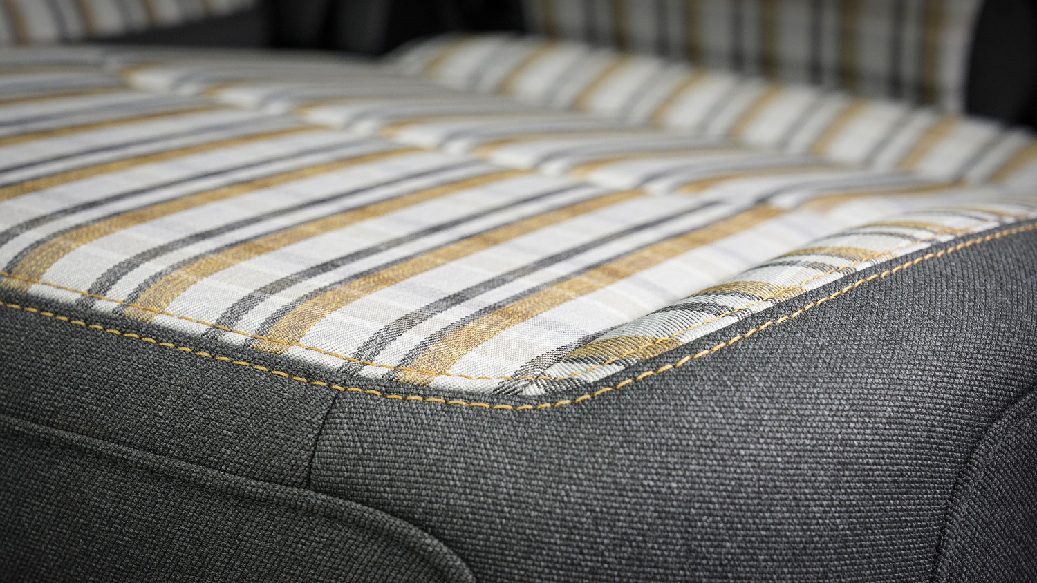 Diamond-stitched upholstery lines the cabin, and the shifter is hidden below the bench. Seat belts have been fitted along with a ’40-style steering wheel. Tears are noted along the edge of the rear bench.